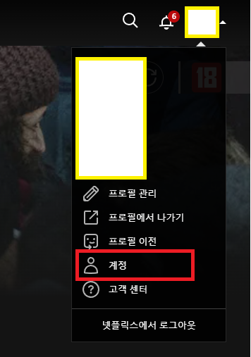 넷플릭스에 로그인 하신 후 오른쪽 상단을 보시면 계정 아이콘이 있고
