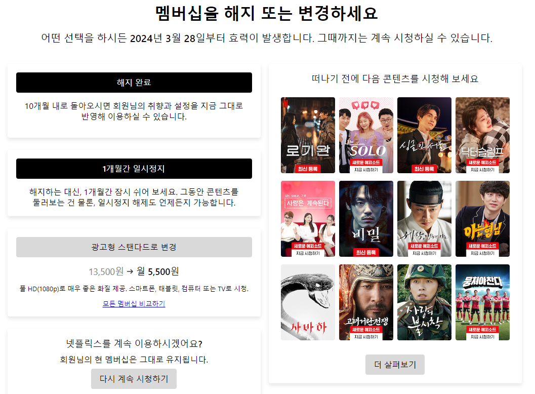- 1개월 간 일시정지 : 영상 시청을 금지되지만 콘텐츠를 보는 건 가능합니다.